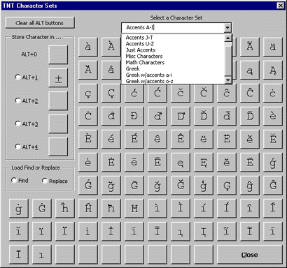 and to copy them from the grid to Find and Replace. With TNT fonts, accents